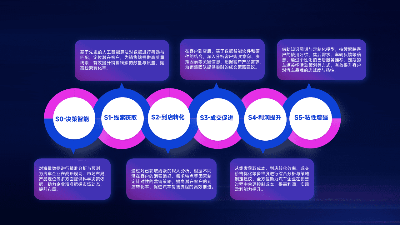 通过拓宽潜在客户来源、、、优化线索分配并提高到店转化率,,,以增强销售效率。。同时,,利用线索数据不断优化分析模型,,有效提升转化率,,,扩大营销影响力。。。。